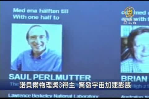 【新唐人亞太台2011年10月5日訊】2011年諾貝爾獎陸續揭曉,星期三(4日),三位來自美國的天文物理學家,藉由研究超新星,得出了宇宙正以極快速度加速擴張的驚人發現,共同獲頒本屆的諾貝爾物理獎。