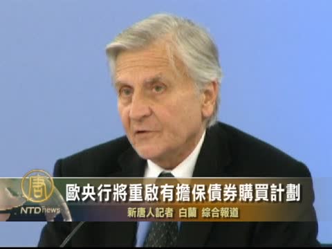 【新唐人2011年10月6日訊】歐洲央行行長特里謝(Jean-Claude Trichet)週四表示,該行將重新啟動購買有擔保債券的計劃,並重新推出一年期銀行貸款計劃,原因是歐元區主權債務危機已經帶來了凍結貨幣市場的威脅。當天早些時候英國財政大臣奧斯本同意了央行再向向市場注入750億英鎊資金的計劃,將其債券購買計劃的規模擴大了2750億歐元。