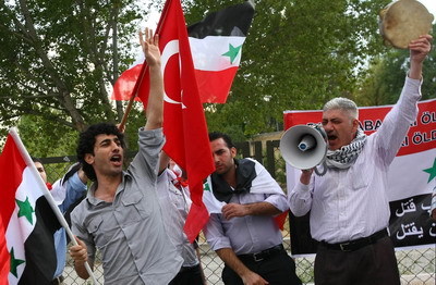 2012-04-07 00:00:086日又有數百敘利亞難民進入土耳其避難。 ,土耳其敘利亞難民抗議阿薩德政權