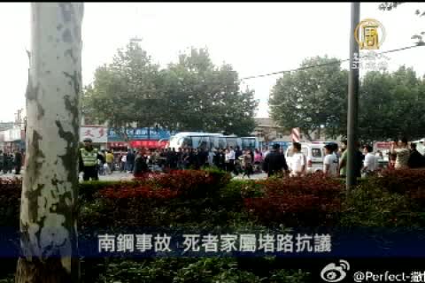 【新唐人亞太台2011年10月7日訊】江蘇南鋼集團煉鐵廠鐵水外流事故,目前失蹤者已經找到,死亡人數累積到12人,唯一生還者全身皮膚百分之10燒燙傷,正在醫院救治。死者家屬6號前往南鋼討說法時,被拒於門外,不滿的家屬轉而堵路抗議。