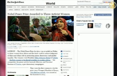 2011諾貝爾和平獎今年頒發給非洲和中東的三位婦女,美國的華爾街日報說,這是對「阿拉伯之春」、特別是當地婦女權力方面的一種肯定。