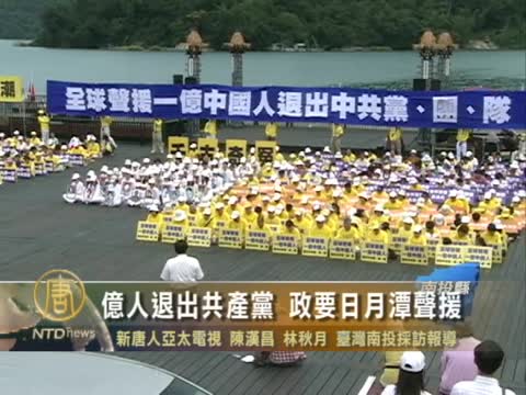 來自中台灣各地近千名法輪功學員,今天在日月潭舉辦全球聲援一億中國人退出中共黨、團、隊聲援大會,支持13億中國同胞脫離中共暴政,重獲基本人權自由及信仰,當地政要也表達支持。