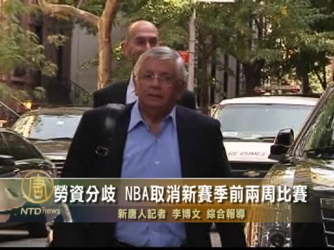 【新唐人2011年10月11日訊】由於勞資雙方在經過長時間的談判後仍然無法解決分歧 ,美國全國籃球協會NBA星期一宣佈取消新賽季常規賽前兩個星期的比賽。