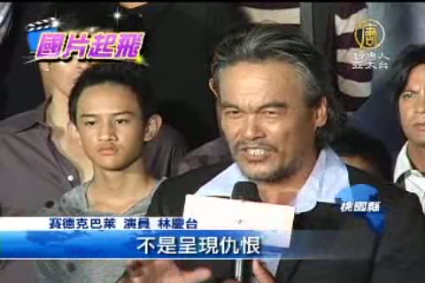 【新唐人亞太台2011年10月11日訊】國片《賽德克‧巴萊》, 上映一個多月,除了票房亮眼,也建立了好口碑, 在下集彩虹橋播出一週後, 所有的演員終於在桃園首度露面,分享拍片歷程,飾演中年莫那魯道的演員林慶台, 向媒體分享了他在這部片要傳遞的深刻訊息,反省與化解仇恨。