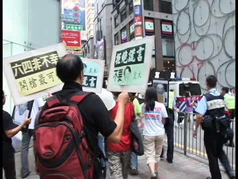 【新唐人2011年10月12日訊】香港支聯會星期一到中共全國人大常委範徐麗泰辦事處,抗議範徐麗泰日前宣稱六四事件是不幸的言論,並對她意圖掩蓋六四屠殺表示憤怒和不滿。