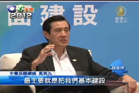 【新唐人亞太台2011年10月12日訊】馬英九總統今天(12日)繼續向外界說明黃金十年的政策願景。在公共建設的部分,馬英九說要讓台灣全面跟上先進國家的水準為目標。馬英九還強調,這些理 念,是銜接愛台12建設的基礎。