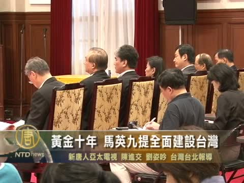 【新唐人2011年10月12日訊】馬英九總統今天(12日)繼續向外界說明黃金十年的政策願景。在公共建設的部分,馬英九說要讓台灣全面跟上先進國家的水準為目標。馬英九還強調,這些理念,是銜接愛臺12建設的基礎。