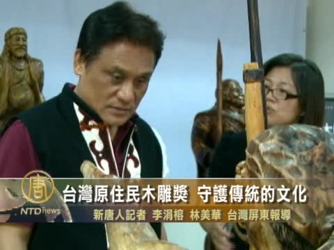 【新唐人2011年10月12日訊】電影賽德克巴萊熱映,喚起台灣人對原住民抗日曆史的關注,屏東縣舉辦第11屆全國原住民木雕獎,來自花蓮的藝術家胡銀祿,以「沙卡亨戰役抗日英雄」為主題的木雕作品,獲選為社會組首獎。今年的主題是「守護」,通過木雕工藝,希望原住民傳統的圖紋藝術能夠傳承下來。
