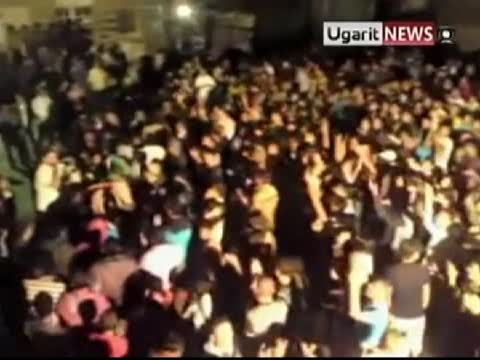 網上的視頻顯示,12日晚,敘利亞戴著面具的抗議民眾在泰爾•倫法特(Tel Refat)的街頭,高喊「阿薩德離開!」