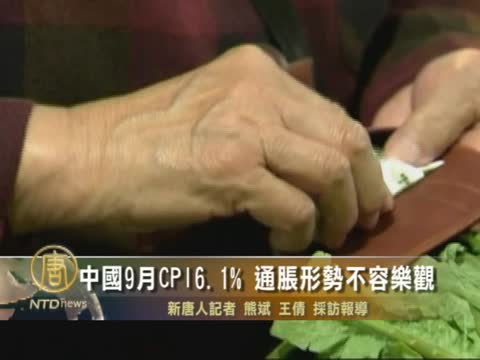 【新唐人2011年10月14日訊】中國9月份CPI同比上漲6.1%,食品價格再次成為影響通脹的最大因素,9月食品類價格同比上漲13.4%,影響價格總水準上漲約4.05個百分點,大陸學者指出,高房價及高房租推高物價,國際燃油價格下滑,但是國內沒有調降,中國通脹形勢不容樂觀。