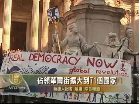 【新唐人2011年10月16日訊】佔領華爾街的抗議活動擴展到全球71個國家。抗議者對高漲的失業率表示不滿。一些國家中發生了暴力衝突。