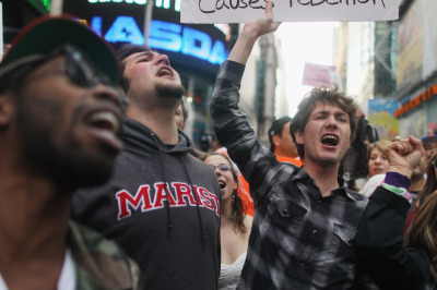 10月15日,“佔領華爾街”運動已蔓延到82個國家,這場運動的發起地,紐約祖科蒂公園裡的抗議人群也有增無減。一群舉著“佔領北京”的標牌前來抗議的華人表示,他們想提醒人們,全世界的問題,正是由於中共這個獨裁政權被允許加入世界經濟體系之後造成的。