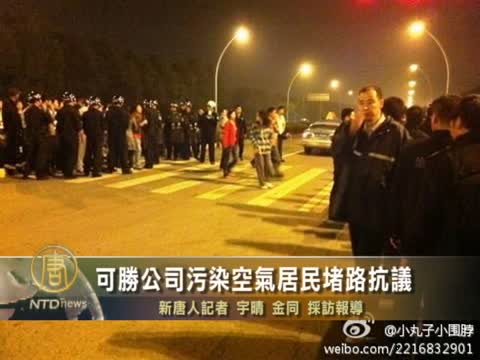 【新唐人2011年10月16日訊】9月14晚,江蘇蘇州工業園區湖東最大的社區-鳳凰城小區的居民,集體堵路,抗議附近的可勝科技公司排放有毒氣體污染環境,蘇州當局出動防暴警察驅散人群,多名業主被打傷。