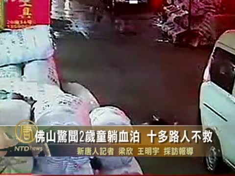 【新唐人2011年10月17日訊】最近,大陸廣東佛山市發生一起駭人聽聞事件。一名2歲多女童被車撞倒後不久,又被來車壓過。一名拾荒老婦呼救後,經女童的母親送醫急救。令人髮指的是,不僅2名肇事司機逃逸,期間經過的十多名路人都沒有理會。