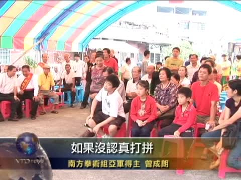 【新唐人2011年10月17日訊】今年參加由本臺舉辦的新唐人第三屆武術大賽的台灣選手曾成朗以及蕭振南,分別獲得南方拳術組亞軍和傳統武術特別貢獻獎,16日上午,武館為贊助行程經費的鄉親,舉辦了自助餐會,同時也希望讓傳統武術在台灣能夠繼續的傳承下去。
