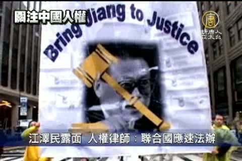 【新唐人亞太台2011年10月19日訊】7月初傳出死訊的前中共黨魁江澤民,日前高調露面,再度引起非議;人權律師朱婉琪表示,迫害法輪功的元凶江澤民,活著的目地是等著受審,九月底澳洲法輪功學員繼2002年後,再度將江澤民滅絕法輪功案子被送往聯合國,要求以反人類罪等罪名起訴江澤民。