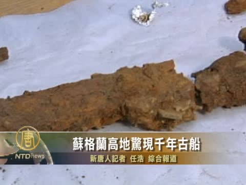 【新唐人2011年10月20日訊】全球考古再有突破。考古學家在蘇格蘭高地的偏遠地區發現了一艘千年古船墓,出土了很多珍貴文物,創下了英國第一。