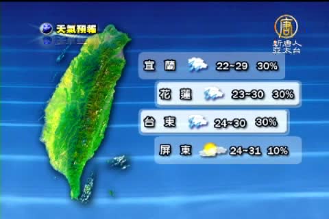 【新唐人亞太台2011年10月21日訊】來關心天氣,氣象局表示,隨著東北季風減弱,週休台灣各地天氣都會陸續放晴,除了北部地區週六有局部陣雨外,各地都是晴朗溫暖的好天氣,白天高溫甚至會超過30度,很適合安排出門旅遊。以下帶您關心10月22號星期六的天氣預報。
