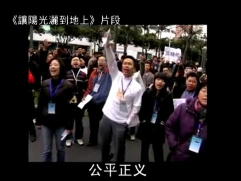 《讓陽光灑到地上》畫面:言論無罪,自由萬歲,公平正義比太陽還要光輝。