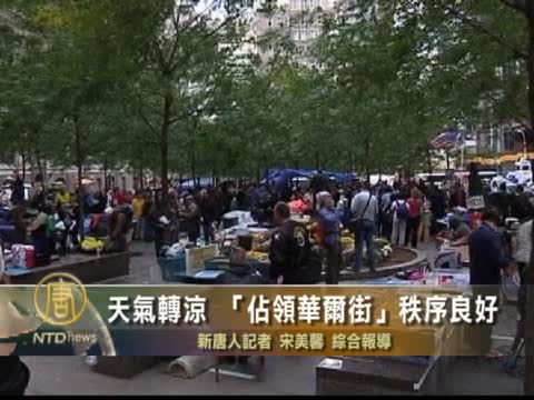 【新唐人2011年10月22日訊】紐約的天氣已經漸漸變涼了,佔領華爾街運動的抗議者們在公園裡建立了更多的基礎設施,成了一個自給自足的生活空間,抗議仍然在繼續,只不過多了一些社區聚會的悠閑氣氛。