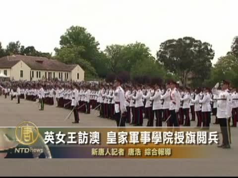 【新唐人2011年10月22日訊】星期六(10月22日),正在澳大利亞訪問的英國女王伊莉莎白二世與夫婿威爾斯親王參加在澳大利亞首都堪培拉舉行的皇家軍事學院100週年校慶典禮,女王並親自主持授旗儀式。