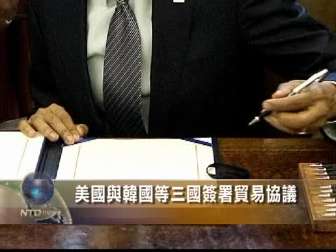 【新唐人2011年10月22日訊】美國總統奧巴馬星期五(10月21日)簽署了與韓國、哥倫比亞和巴拿馬的貿易協議,使這三項協議正式生效。