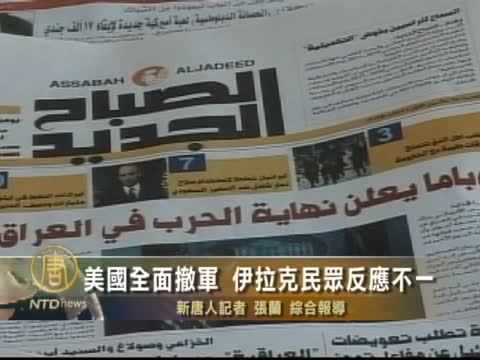 【新唐人2011年10月22日訊】就在美國總統歐巴馬宣佈今年年底將全面撤出伊拉克後,伊拉克民眾開始議論紛紛。他們有的歡迎這項決定,也有人認為這會導致伊拉克的安全部門更加緊張。