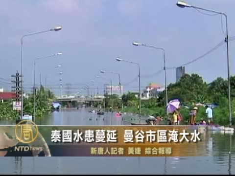 【新唐人2011年10月23日訊】泰國的洪水目前已經淹進曼谷市區,金融區域與百貨公司仍無法倖免於難,官方正緊急將洪水抽至外海,表示超過240萬人受此次洪水影響,自七月開始,至少有265人因此喪生。