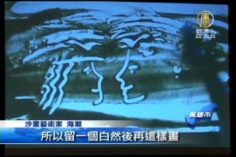 【新唐人亞太台2011年10月25日訊】當手指穿過細砂,跳動在透光的毛玻璃上,勾勒出無數奇妙圖案,這就是沙畫藝術吸引人的地方!23號夜晚,在高雄 駁二特區有一場沙畫研習,讓現場民眾直接體驗沙畫的魅力。