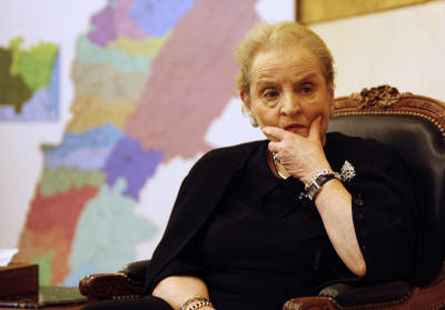 前美國國務卿Madeleine K. Albright:「你是先講話,以便為這件事定下調子呢,還是最後講話以便防止意外呢,還是你在中間講話以便只是參與其中,但底線是,美國必須講話。」