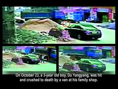 On October 23, a 3-year old boy, Du Yangyang, was hit