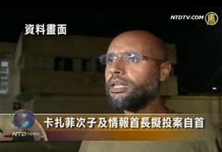 【新唐人2011年10月27日訊】據利比亞全國過渡委員會的高級軍官說,有消息人士告知,卡扎菲的次子賽義夫和前情報首長塞努希(Abdullah al-Senussi)正試圖通過一個鄰國達成一項協議,要向海牙國際刑事法庭「投案自首」。他們已斷定,留在利比亞或前往阿爾及利亞和尼日爾,對他們都不安全。