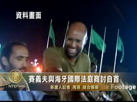 【新唐人2011年10月29日訊】利比亞被打死的獨裁統治者卡扎菲的兒子賽義夫,正在試圖通過向國際法庭自首來保命。星期五(10月28號),海牙國際刑事法庭透露,已經通過中間人,跟賽義夫進行了非正式對話。今年6月,賽義夫以反人類罪,被國際刑事法庭通緝。