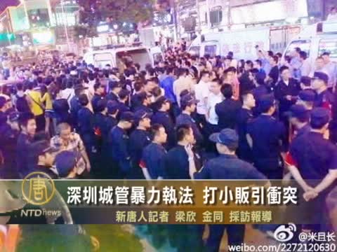【新唐人2011年10月29日訊】28號晚,深圳市寶安區福永鎮發生城管人員暴力執法引發警民糾紛。當局出動防暴警察和特保到現場控制。附近商家人員表示,城管每天收每一名小販5塊錢。能不能擺攤全由城管決定。