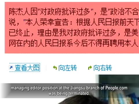 11月1號下午,資深媒體人陳傑人在新浪發微博表示,他在《人民網》江蘇視窗執行總編輯職務已經被終止,理由是他對政府批評過多,是所謂“美國線人”,黨的喉舌不能聘用“不合作者”,包括《人民網》在內的《人民日報》報系今後不得再聘用他。