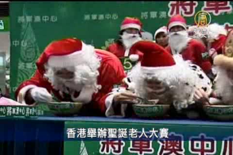 【新唐人亞太台2011年11月3日訊】儘管眼下距離西方傳統的耶誕節還有些日子,可是聖誕老人們已經提前開始熱身了,香港聖誕老公公們星期三(11月2號)有一個特別的比賽,為的是要爭取今年最佳聖誕老公公的頭銜,以便參加瑞典2011聖誕老人運動會。