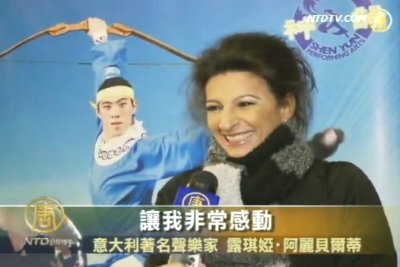 義大利著名聲樂家露琪婭•阿麗貝爾蒂表示,神韻演出讓她的心深受感動。