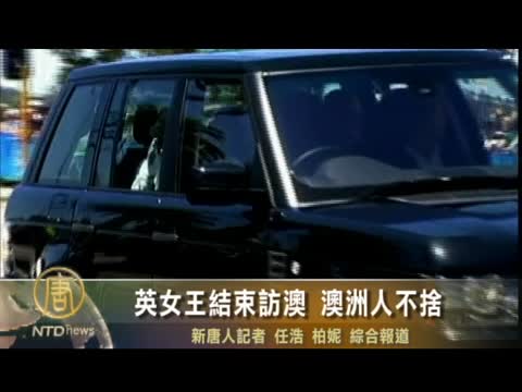 【新唐人2011年11月4日訊】英國女王伊麗莎白二世和夫君愛丁堡公爵,10月29號(星期六)在珀斯結束了被認爲是他們這一生最後一次的澳洲行。當天有十萬澳洲人前去歡送,一種戀戀不捨的情緒在現場瀰漫。