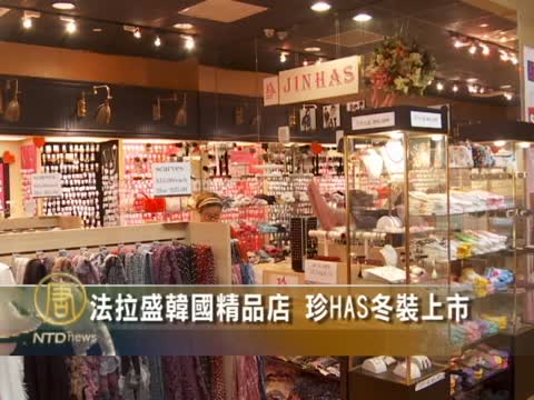 華人經理:「在韓國的我們的職員,直接把韓國最流行的東西,空運過來。風格不一樣在於哪裏呢?它的風格很大方,很放鬆的,就是這種,它是越穿越喜歡的。」同時他們長期堅持優質低價策略,吸引了越來越多華人顧客。法拉盛韓國精品服飾店「珍HAS」。