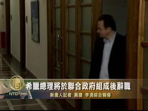 【新唐人2011年11月7日訊】星期天希臘總理帕潘德裡歐(George Papandreou)預計於新聯合政府成立後辭去職務。在明年春天大選之前,新政府將行使4個月的使命。