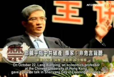 【新唐人2011年11月7日訊】香港中文大學教授郎咸平上個月在瀋陽舉行一場閉門演講,用數據證明中共政府已經陷入經濟危機,瀕臨破產。有學者說郎咸平的話毫不稀奇,很多專家學者都有同感。