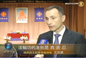 參加當天交流會的法輪功學員來自不同的背景,其中有一位是今年剛剛獲得了瑞典國王創業獎的成功企業家瓦西裏(Vasilios Zoupounidis),“法輪功的準則是真 善 忍,當然,這意味著在你的日常生活中,你應該遵照這些原則。這適用於你的工作環境、家庭和社會生活中。”