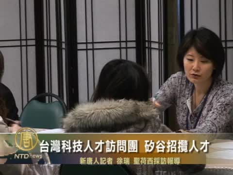 【新唐人2011年11月7日訊】中華民國行政院延攬海外科技人才訪問團,於11月5日,在加州矽谷進行人才招攬活動。來自台灣的共30多家各種研究機構參加了這次活動。下面請看詳細內