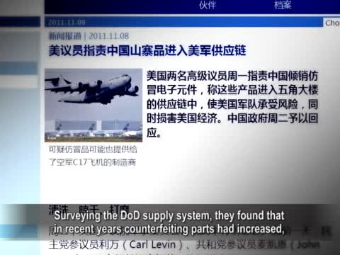 在11月8號舉行的聽證會上,參議院軍事委員會主席,民主黨參議員卡爾•萊文(Carl Levin)說,美國政府對國防部供應體系中的387家公司進行調查後,發現近年來假冒偽劣產品的數量上升,中國是主要來源。