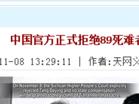 唐德英女士是在今年早些時候向法院提交賠償申請,當局拖延了四個多月才予以答復。四川省高級人民法院11月8號明確拒絕唐德英,不會對六四死難者進行任何國家賠償。