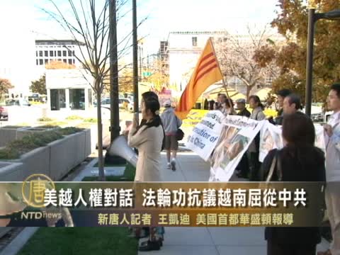 11月9日上午,美國和越南政府在美國國務院內展開為期兩天的人權對話。與此同時,法輪功學員和民間機構代表在會場外,對越南政府屈從中共、迫害人權的行為表達抗議。