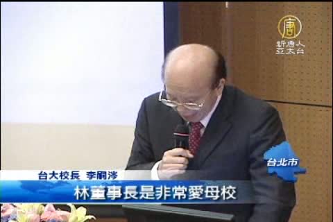 「林董事長是非常愛母校,非常愛母系。林董事長他是非常謙虛,也喜歡開玩笑。林董事長成績是不錯的,他在大學,前40%畢業的;他在研究所,他是前三名畢業的。但是他在外面,從來不說他成績好,他都說自己成績不好,表達台大人謙虛的風氣。」