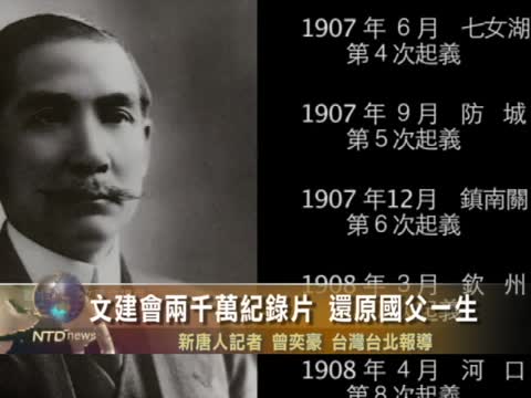 斥資新臺幣2千萬,走訪5個國家、在17個城市拍攝,建國百年,台灣製作記錄片,「築夢者孫逸仙」,100分鐘的影像,要和觀眾一起追索中華民國國父孫中山的精彩人生。