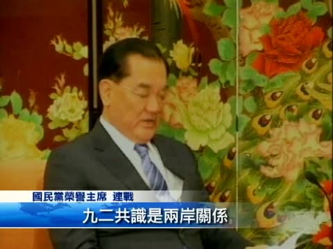 國民黨榮譽主席連戰:「九二共識是兩岸關係,和平發展的最重要的基礎,也是雙方面經貿互惠和繁榮的一個基石,也是我們彼此之間,政治互信的一個憑藉。」