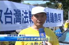 2012-07-13 21:54:03營救鍾鼎邦的聲音,也讓來台參訪的大陸官員聽見。天津市長黃興國,今天(13日)到台北故宮博物院參觀。由於時值台灣法輪功學員鍾鼎邦,被中共非法抓捕,因此80多位法輪功學員,來到故宮外向黃興國喊話,要求中共停止迫害法輪功,並盡速釋放鍾鼎邦。